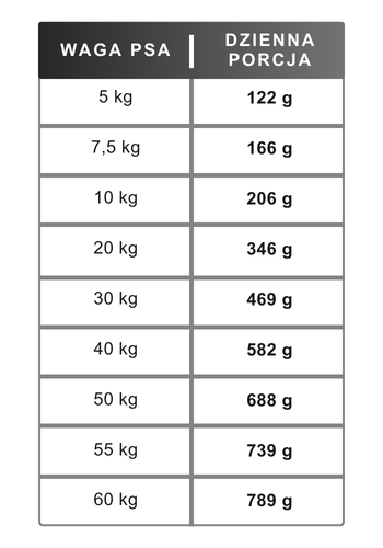 Zalecenia co do ilości podawanej karmy mogą się różnić w zależności od poziomu aktywności i zapotrzebowania konkretnego psa.