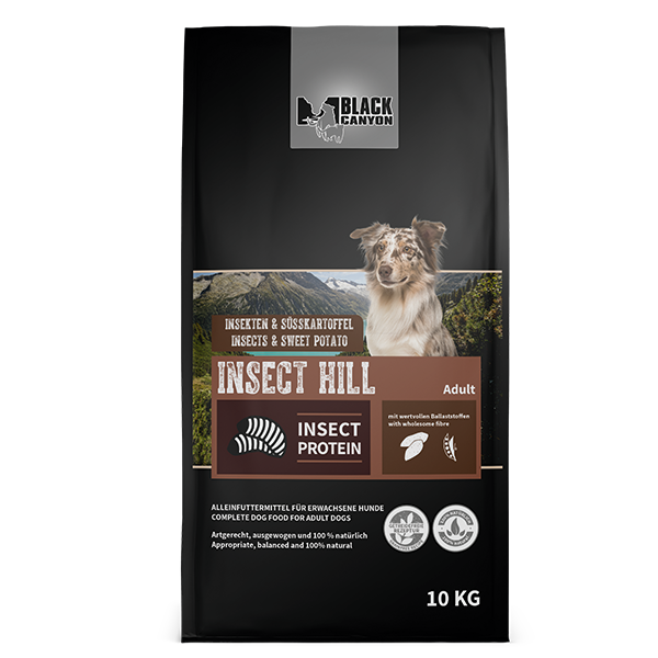 Sucha karma BLACK CANYON Insect Hill jest polecana jeśli pies ma reakcje alergiczne i problemy trawienne przez niektóre białka zwierzęce (swędzenie, przewlekła biegunka lub ciągłe wzdęcia). Białko pochodzące od owadów pomaga zmniejszyć nietolerancję i jest bardzo lekkostrawne. Dodatkowo karma Insect Hill: